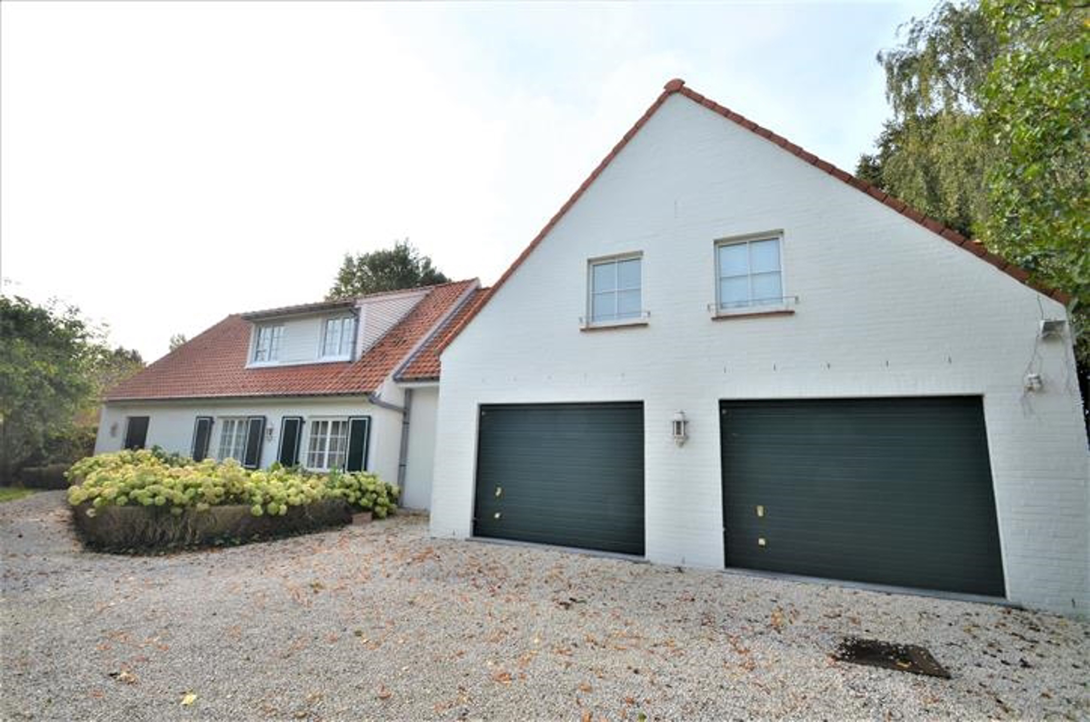 Un portail motorisé mène à un parking extérieur pouvant accueillir plusieurs voitures, tandis qu'un double garage avec portes motorisées offre un espace de stationnement sécurisé avec un accès direct à la villa pour plus de commodité. La propriété est équipée d'une alarme, de volets électriques et le chauffage est assuré par une installation au mazout.